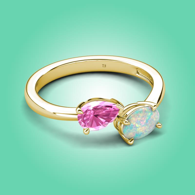 1.40 ctw Pink Sapphire Pear Shape 7x5 mm & Opal Oval Shape 7x5 mm with Prong setting Two Stone Duo Women Engagement Ring in 18K Yellow Gold More Details ...