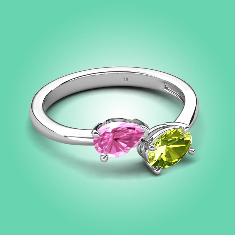 1.80 ctw Pink Sapphire Pear Shape 7x5 mm & Peridot Oval Shape 7x5 mm with Prong setting Two Stone Duo Women Engagement Ring in Platinum More Details ...