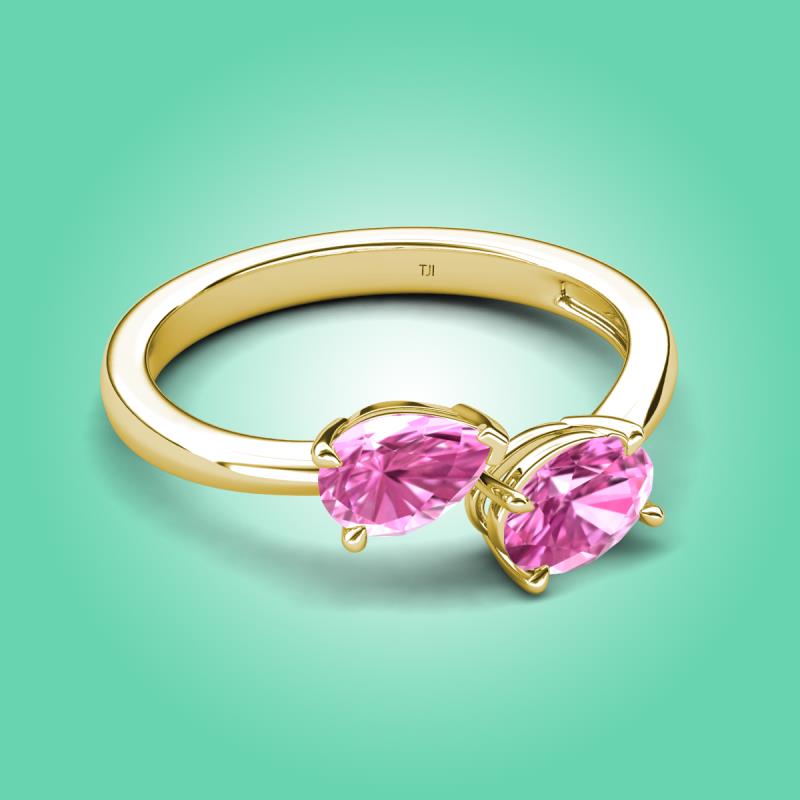 1.90 ctw Pink Sapphire Pear Shape 7x5 mm & Pink Sapphire Oval Shape 7x5 mm with Prong setting Two Stone Duo Women Engagement Ring in 10K Yellow Gold More Details ...
