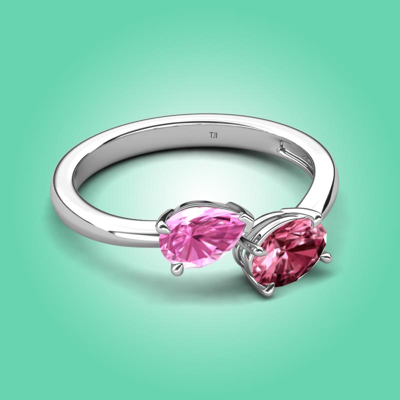 1.75 ctw Pink Sapphire Pear Shape 7x5 mm & Pink Tourmaline Oval Shape 7x5 mm with Prong setting Two Stone Duo Women Engagement Ring in 14K White Gold More Details ...
