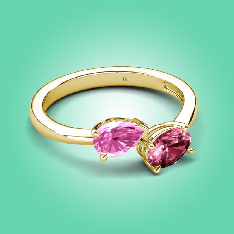 1.75 ctw Pink Sapphire Pear Shape 7x5 mm & Pink Tourmaline Oval Shape 7x5 mm with Prong setting Two Stone Duo Women Engagement Ring in 14K Yellow Gold More Details ...