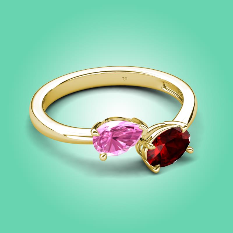 1.85 ctw Pink Sapphire Pear Shape 7x5 mm & Red Garnet Oval Shape 7x5 mm with Prong setting Two Stone Duo Women Engagement Ring in 14K Yellow Gold More Details ...