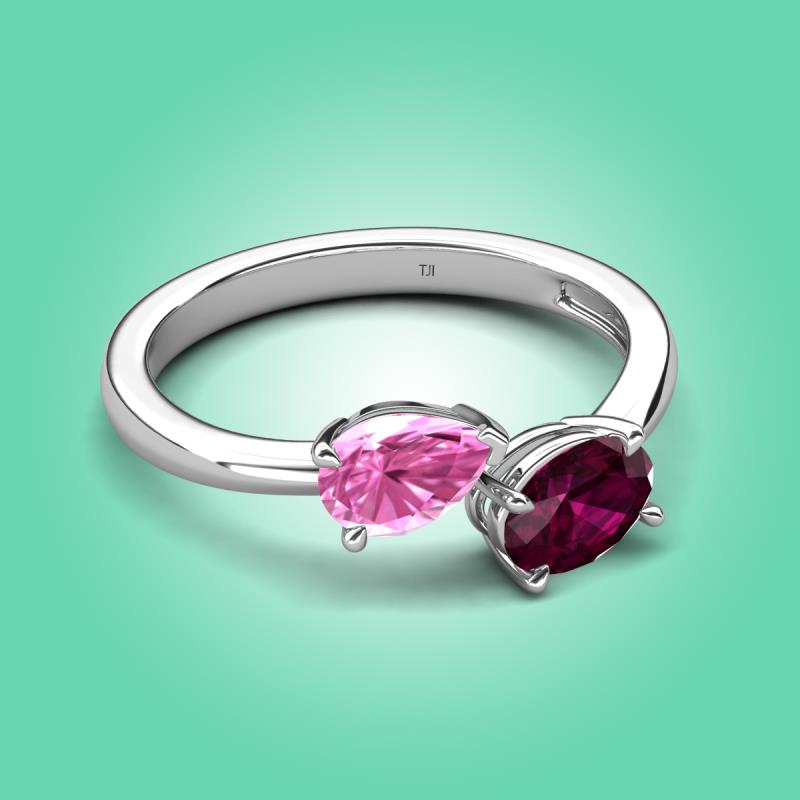 1.90 ctw Pink Sapphire Pear Shape 7x5 mm & Rhodolite Garnet Oval Shape 7x5 mm with Prong setting Two Stone Duo Women Engagement Ring in 14K White Gold More Details ...