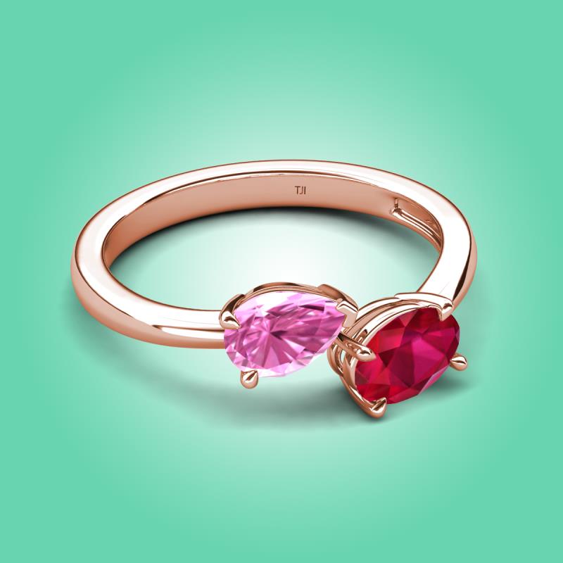 1.80 ctw Pink Sapphire Pear Shape 7x5 mm & Ruby Oval Shape 7x5 mm with Prong setting Two Stone Duo Women Engagement Ring in 10K Rose Gold More Details ...