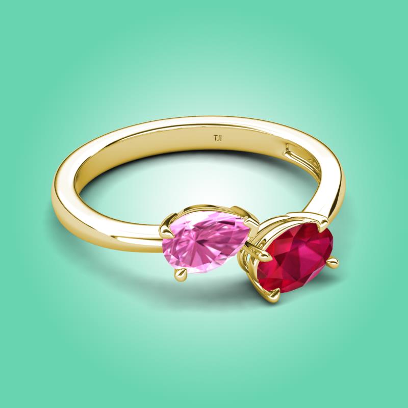 1.80 ctw Pink Sapphire Pear Shape 7x5 mm & Ruby Oval Shape 7x5 mm with Prong setting Two Stone Duo Women Engagement Ring in 10K Yellow Gold More Details ...