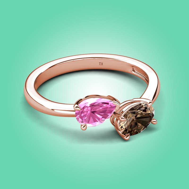1.65 ctw Pink Sapphire Pear Shape 7x5 mm & Smoky Quartz Oval Shape 7x5 mm with Prong setting Two Stone Duo Women Engagement Ring in 14K Rose Gold More Details ...