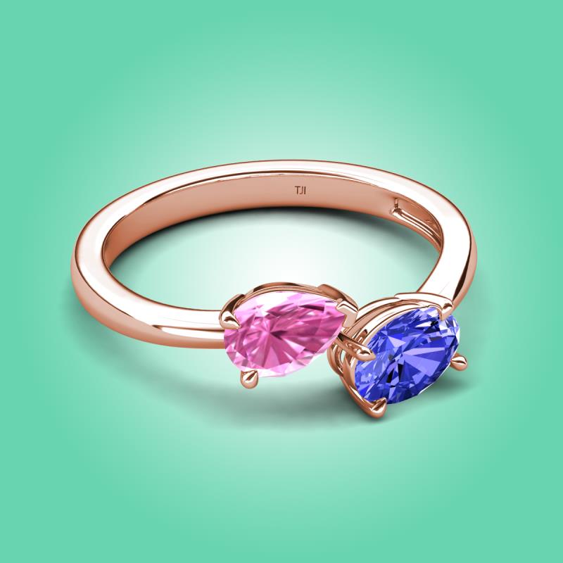 1.75 ctw Pink Sapphire Pear Shape 7x5 mm & Tanzanite Oval Shape 7x5 mm with Prong setting Two Stone Duo Women Engagement Ring in 18K Rose Gold More Details ...