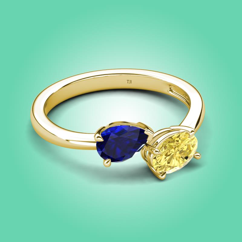 1.90 ctw Pink Sapphire Pear Shape 7x5 mm & Yellow Sapphire Oval Shape 7x5 mm with Prong setting Two Stone Duo Women Engagement Ring in 14K Yellow Gold More Details ...