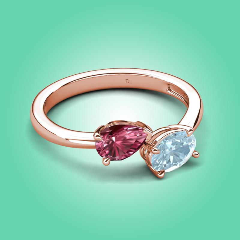 1.42 ctw Pink Tourmaline Pear Shape 7x5 mm & Aquamarine Oval Shape 7x5 mm with Prong setting Two Stone Duo Women Engagement Ring in 14K Rose Gold More Details ...