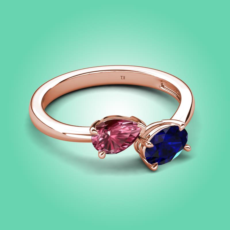 1.60 ctw Pink Tourmaline Pear Shape 7x5 mm & Blue Sapphire Oval Shape 7x5 mm with Prong setting Two Stone Duo Women Engagement Ring in 14K Rose Gold More Details ...