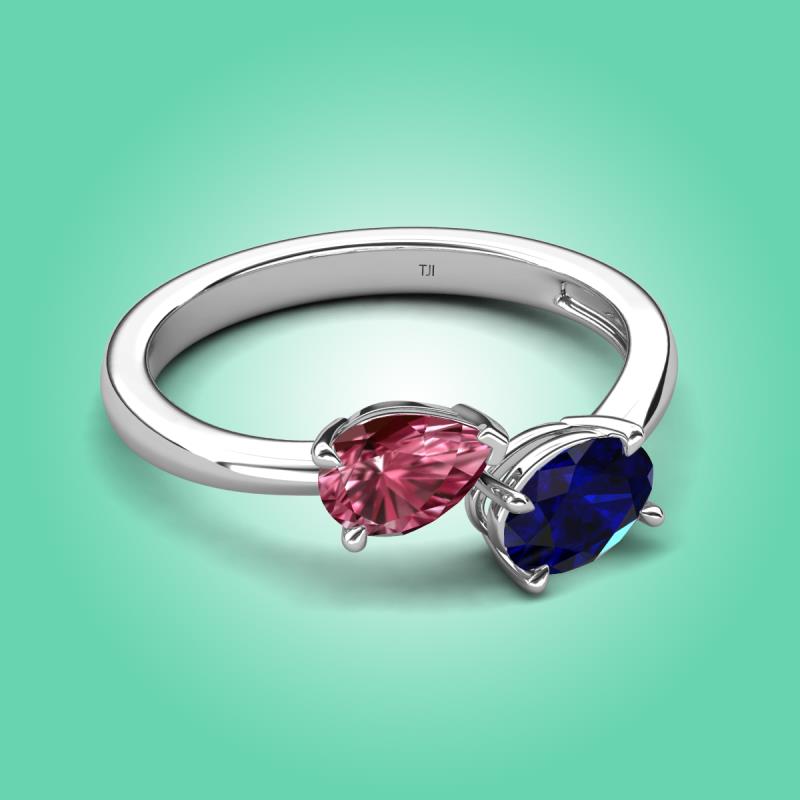 1.60 ctw Pink Tourmaline Pear Shape 7x5 mm & Blue Sapphire Oval Shape 7x5 mm with Prong setting Two Stone Duo Women Engagement Ring in 14K White Gold More Details ...