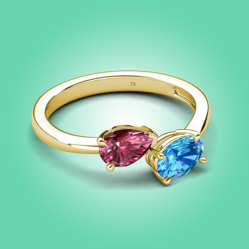 1.70 ctw Pink Tourmaline Pear Shape 7x5 mm & Blue Topaz Oval Shape 7x5 mm with Prong setting Two Stone Duo Women Engagement Ring in 18K Yellow Gold More Details ...