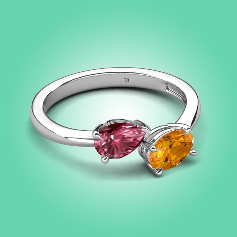 1.42 ctw Pink Tourmaline Pear Shape 7x5 mm & Citrine Oval Shape 7x5 mm with Prong setting Two Stone Duo Women Engagement Ring in Platinum More Details ...