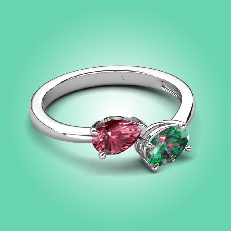 1.86 ctw Pink Tourmaline Pear Shape 7x5 mm & Lab Created Alexandrite Oval Shape 7x5 mm with Prong setting Two Stone Duo Women Engagement Ring in 18K White Gold More Details ...