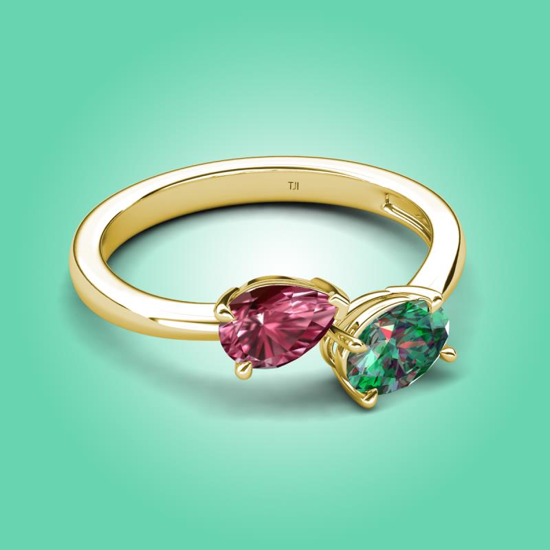 1.86 ctw Pink Tourmaline Pear Shape 7x5 mm & Lab Created Alexandrite Oval Shape 7x5 mm with Prong setting Two Stone Duo Women Engagement Ring in 18K Yellow Gold More Details ...
