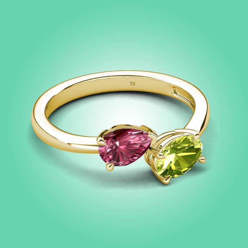 1.60 ctw Pink Tourmaline Pear Shape 7x5 mm & Peridot Oval Shape 7x5 mm with Prong setting Two Stone Duo Women Engagement Ring in 14K Yellow Gold More Details ...
