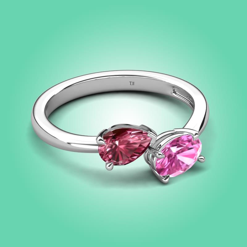 1.70 ctw Pink Tourmaline Pear Shape 7x5 mm & Pink Sapphire Oval Shape 7x5 mm with Prong setting Two Stone Duo Women Engagement Ring in Platinum More Details ...