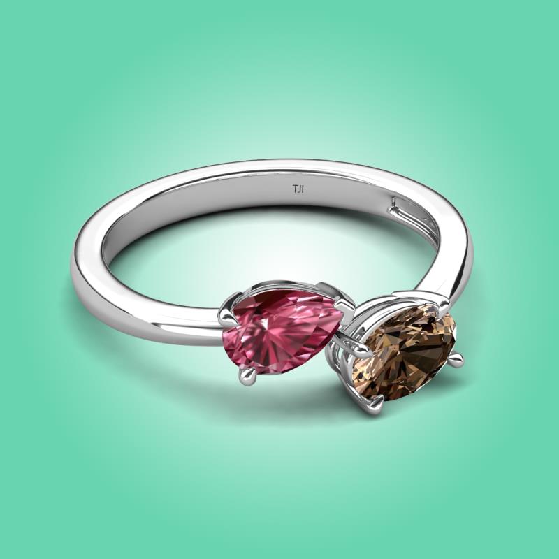 1.45 ctw Pink Tourmaline Pear Shape 7x5 mm & Smoky Quartz Oval Shape 7x5 mm with Prong setting Two Stone Duo Women Engagement Ring in 14K White Gold More Details ...