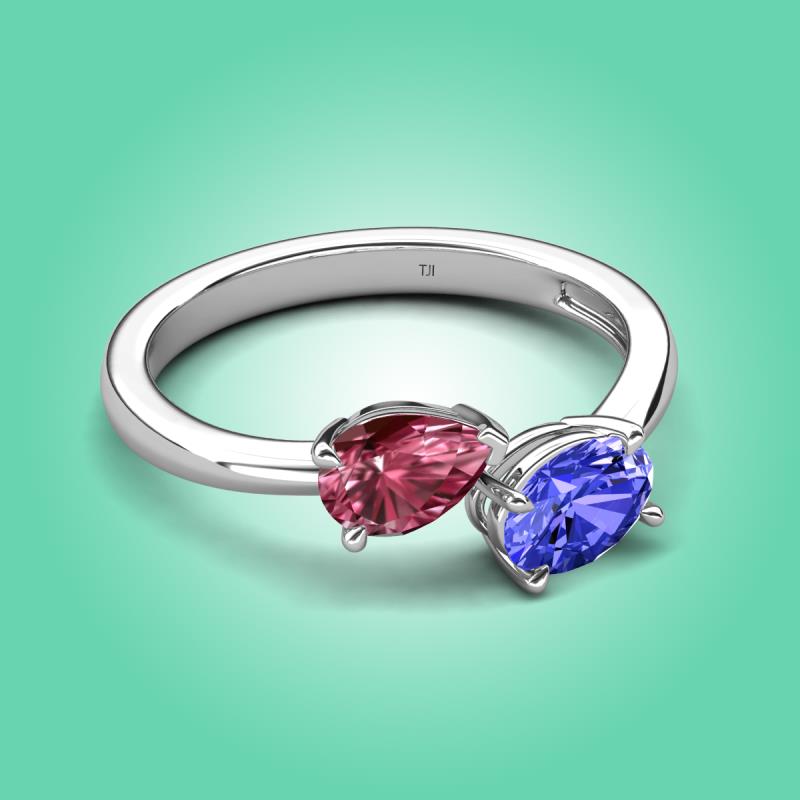 1.55 ctw Pink Tourmaline Pear Shape 7x5 mm & Tanzanite Oval Shape 7x5 mm with Prong setting Two Stone Duo Women Engagement Ring in 18K White Gold More Details ...