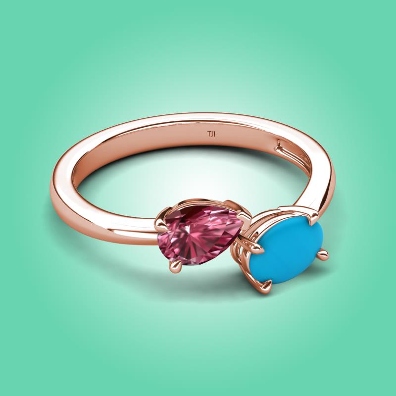 1.40 ctw Pink Tourmaline Pear Shape 7x5 mm & Turquoise Oval Shape 7x5 mm with Prong setting Two Stone Duo Women Engagement Ring in 18K Rose Gold More Details ...