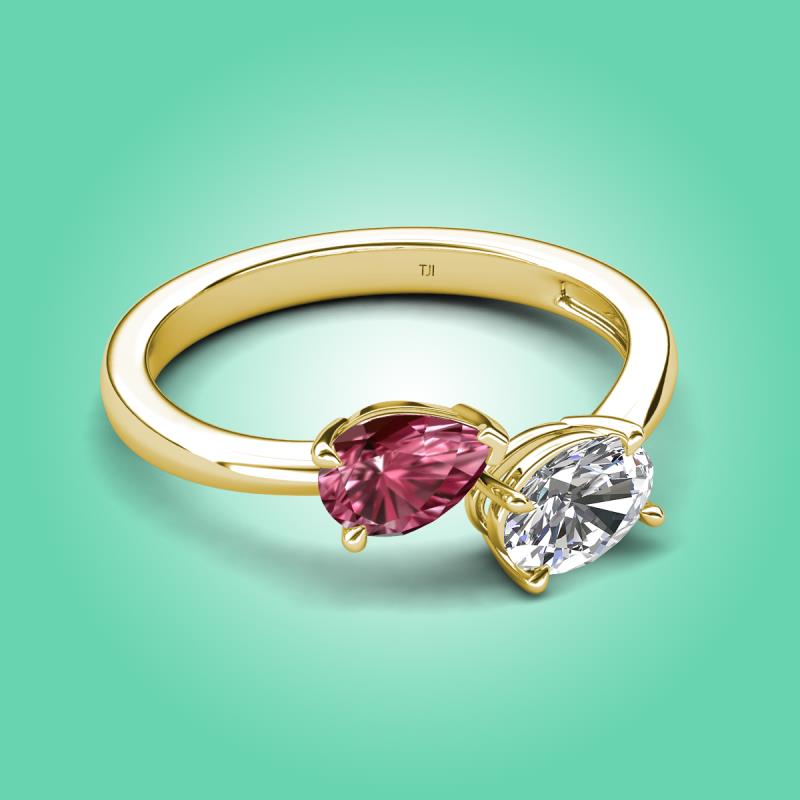 1.70 ctw Pink Tourmaline Pear Shape 7x5 mm & White Sapphire Oval Shape 7x5 mm with Prong setting Two Stone Duo Women Engagement Ring in 18K Yellow Gold More Details ...