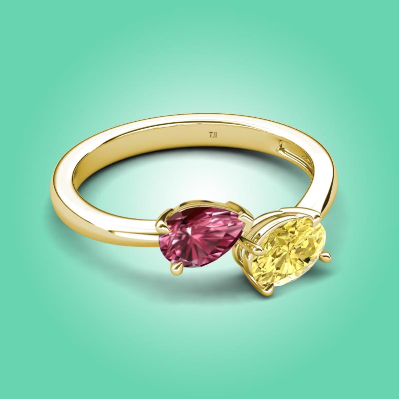 The Pink Tourmaline Pear Shape and Yellow Sapphire Oval Shape Toi Et Moi Duo Ring of 1.70 ctw is the perfect representation of your unique and everlasting bond. The pear and oval shaped gemstones set in a Prong setting, complement each other perfectly, creating a stunning and timeless design that will capture the heart of your loved one, symbolizing your eternal love and commitment that will last a lifetime.