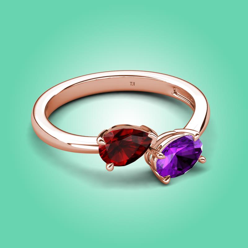 1.62 ctw Red Garnet Pear Shape 7x5 mm & Amethyst Oval Shape 7x5 mm with Prong setting Two Stone Duo Women Engagement Ring in 14K Rose Gold More Details ...
