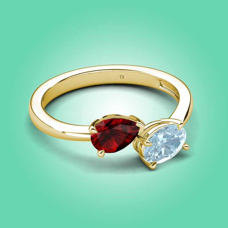 1.62 ctw Red Garnet Pear Shape 7x5 mm & Aquamarine Oval Shape 7x5 mm with Prong setting Two Stone Duo Women Engagement Ring in 18K Yellow Gold More Details ...