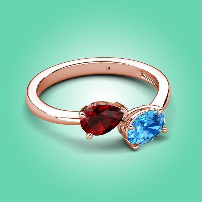 1.90 ctw Red Garnet Pear Shape 7x5 mm & Blue Topaz Oval Shape 7x5 mm with Prong setting Two Stone Duo Women Engagement Ring in 14K Rose Gold More Details ...