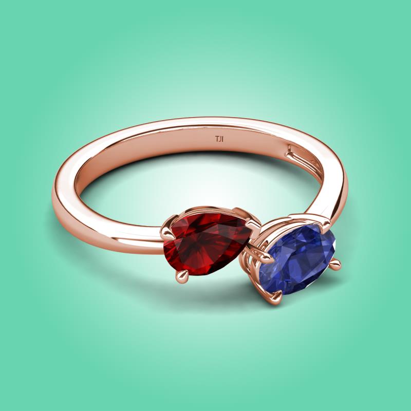 1.57 ctw Red Garnet Pear Shape 7x5 mm & Iolite Oval Shape 7x5 mm with Prong setting Two Stone Duo Women Engagement Ring in 14K Rose Gold More Details ...