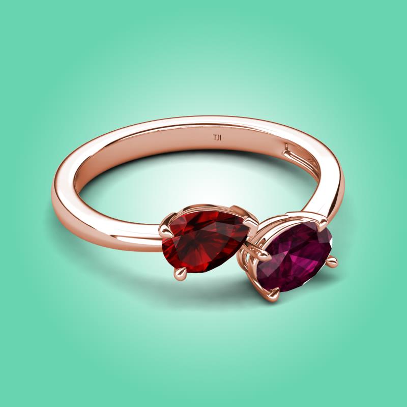 1.90 ctw Red Garnet Pear Shape 7x5 mm & Rhodolite Garnet Oval Shape 7x5 mm with Prong setting Two Stone Duo Women Engagement Ring in 14K Rose Gold More Details ...