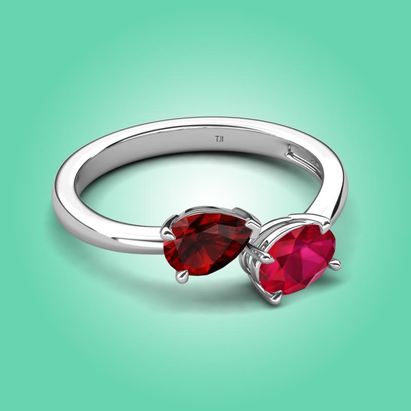 1.80 ctw Red Garnet Pear Shape 7x5 mm & Ruby Oval Shape 7x5 mm with Prong setting Two Stone Duo Women Engagement Ring in Sterling Silver More Details ...