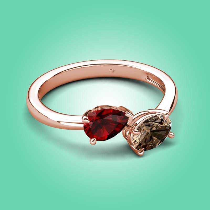 1.65 ctw Red Garnet Pear Shape 7x5 mm & Smoky Quartz Oval Shape 7x5 mm with Prong setting Two Stone Duo Women Engagement Ring in 18K Rose Gold More Details ...