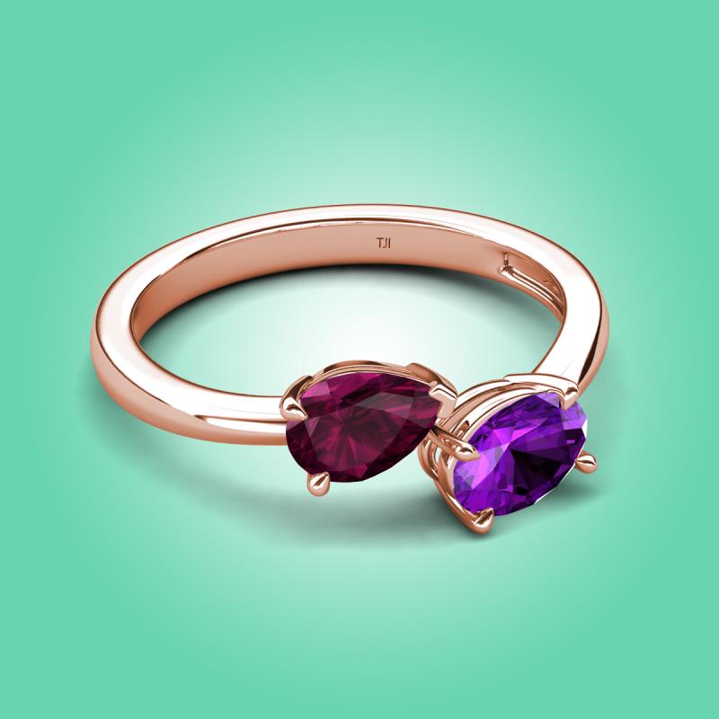 1.62 ctw Rhodolite Garnet Pear Shape 7x5 mm & Amethyst Oval Shape 7x5 mm with Prong setting Two Stone Duo Women Engagement Ring in 14K Rose Gold More Details ...