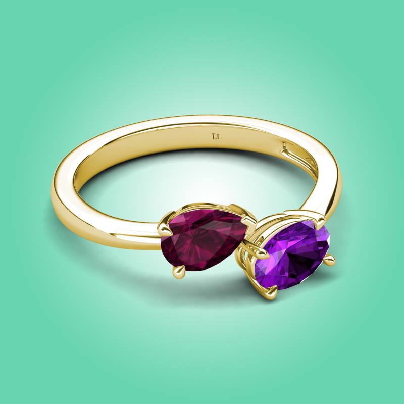 1.62 ctw Rhodolite Garnet Pear Shape 7x5 mm & Amethyst Oval Shape 7x5 mm with Prong setting Two Stone Duo Women Engagement Ring in 18K Yellow Gold More Details ...