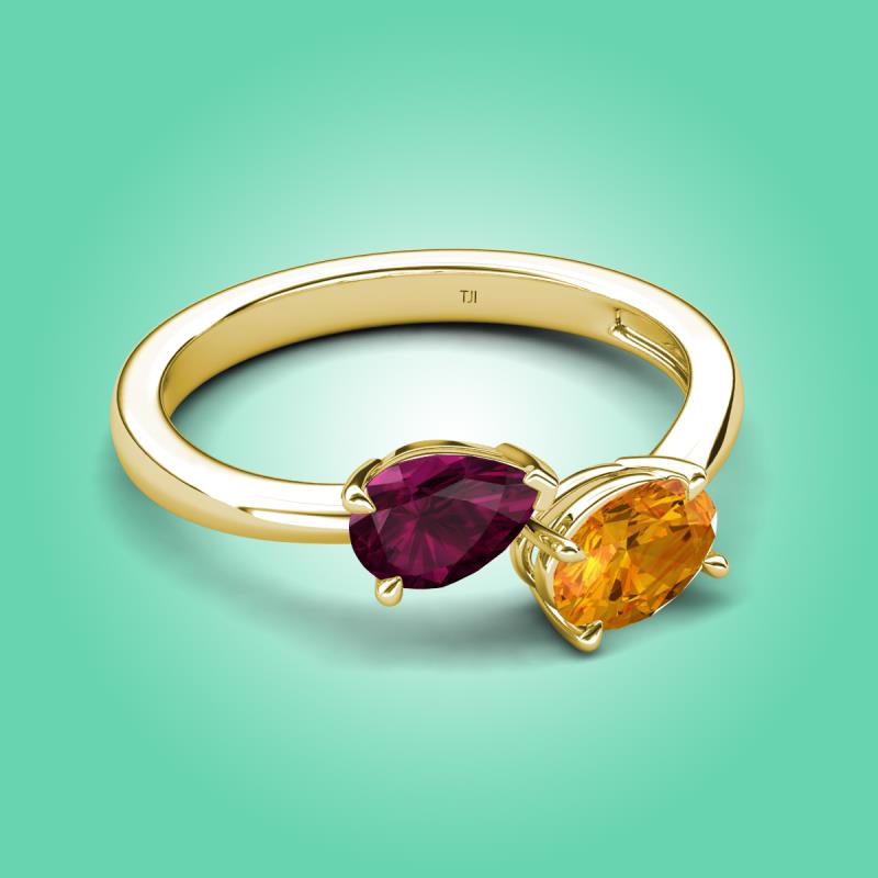 1.62 ctw Rhodolite Garnet Pear Shape 7x5 mm & Citrine Oval Shape 7x5 mm with Prong setting Two Stone Duo Women Engagement Ring in 14K Yellow Gold More Details ...