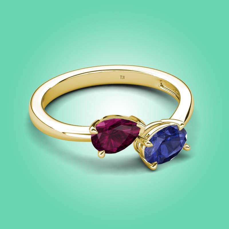1.57 ctw Rhodolite Garnet Pear Shape 7x5 mm & Iolite Oval Shape 7x5 mm with Prong setting Two Stone Duo Women Engagement Ring in 18K Yellow Gold More Details ...