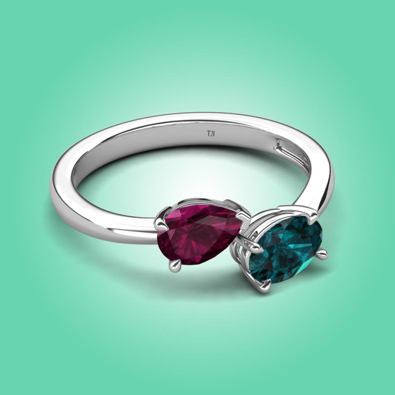 1.90 ctw Rhodolite Garnet Pear Shape 7x5 mm & London Blue Topaz Oval Shape 7x5 mm with Prong setting Two Stone Duo Women Engagement Ring in 14K White Gold More Details ...