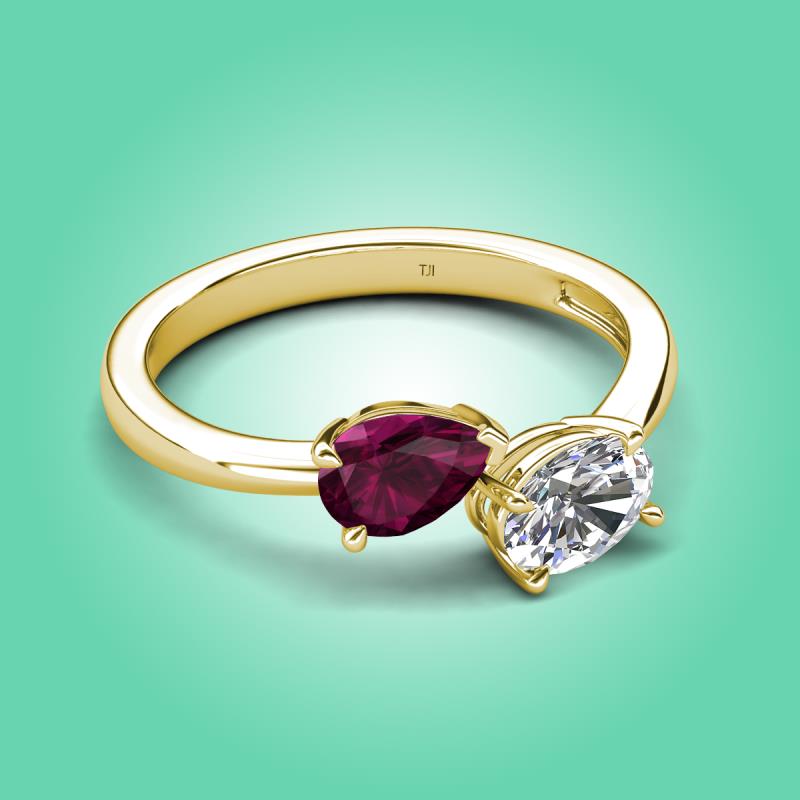 1.75 ctw Rhodolite Garnet Pear Shape 7x5 mm & Moissanite Oval Shape 7x5 mm with Prong setting Two Stone Duo Women Engagement Ring in 14K Yellow Gold More Details ...