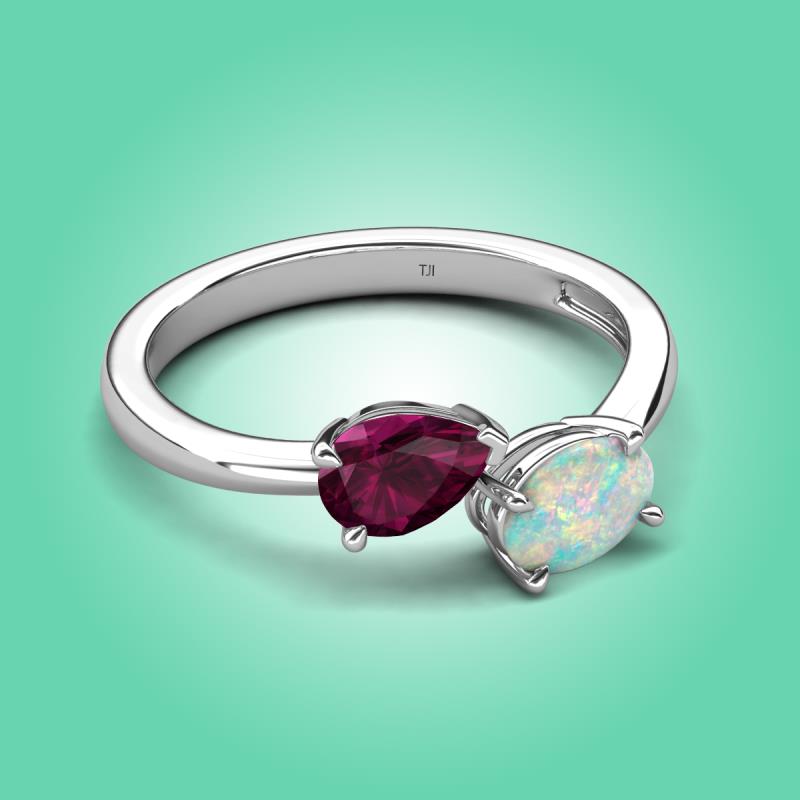 1.40 ctw Rhodolite Garnet Pear Shape 7x5 mm & Opal Oval Shape 7x5 mm with Prong setting Two Stone Duo Women Engagement Ring in 18K White Gold More Details ...