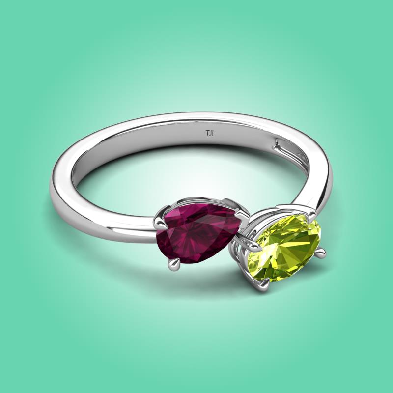 1.80 ctw Rhodolite Garnet Pear Shape 7x5 mm & Peridot Oval Shape 7x5 mm with Prong setting Two Stone Duo Women Engagement Ring in 14K White Gold More Details ...