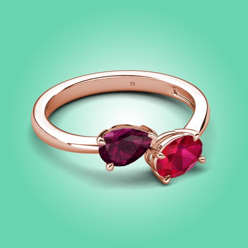 1.80 ctw Rhodolite Garnet Pear Shape 7x5 mm & Ruby Oval Shape 7x5 mm with Prong setting Two Stone Duo Women Engagement Ring in 10K Rose Gold More Details ...