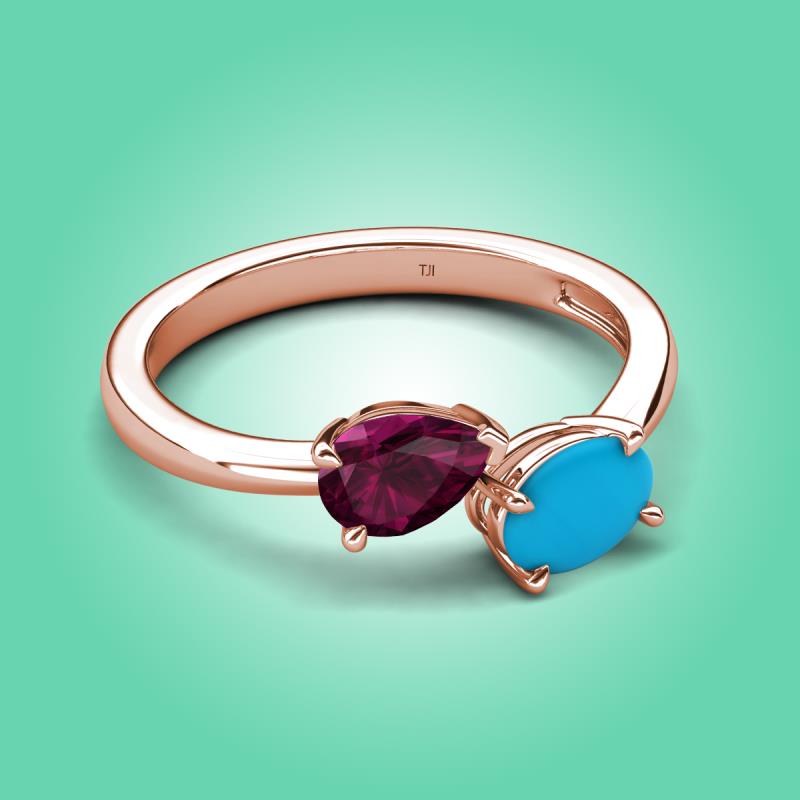 1.60 ctw Rhodolite Garnet Pear Shape 7x5 mm & Turquoise Oval Shape 7x5 mm with Prong setting Two Stone Duo Women Engagement Ring in 14K Rose Gold More Details ...