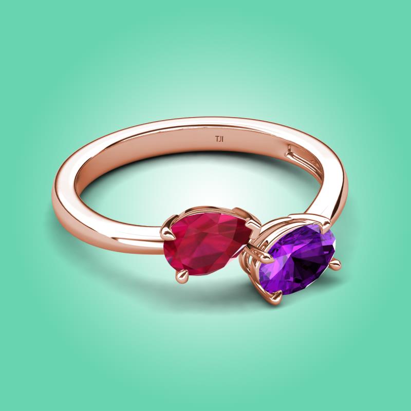 1.67 ctw Ruby Pear Shape 7x5 mm & Amethyst Oval Shape 7x5 mm with Prong setting Two Stone Duo Women Engagement Ring in 14K Rose Gold More Details ...