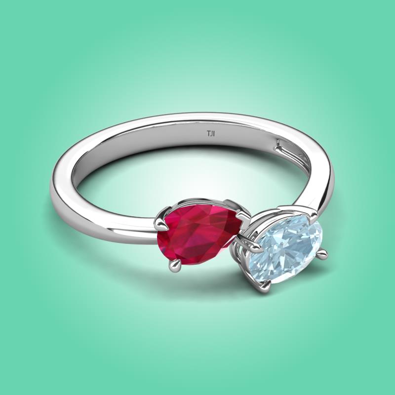 1.67 ctw Ruby Pear Shape 7x5 mm & Aquamarine Oval Shape 7x5 mm with Prong setting Two Stone Duo Women Engagement Ring in 18K White Gold More Details ...