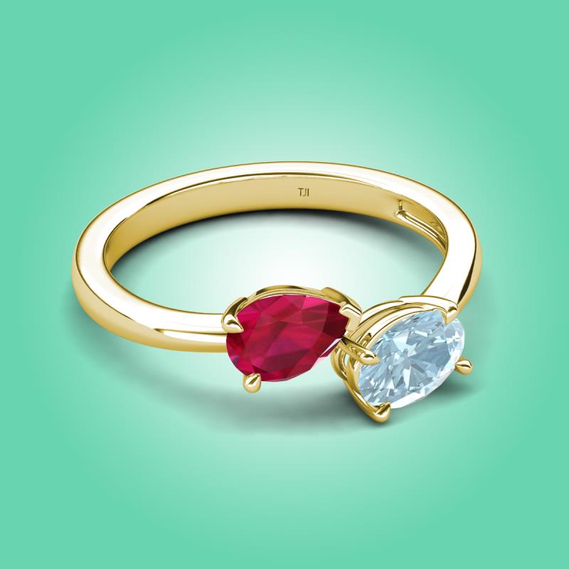 1.67 ctw Ruby Pear Shape 7x5 mm & Aquamarine Oval Shape 7x5 mm with Prong setting Two Stone Duo Women Engagement Ring in 18K Yellow Gold More Details ...