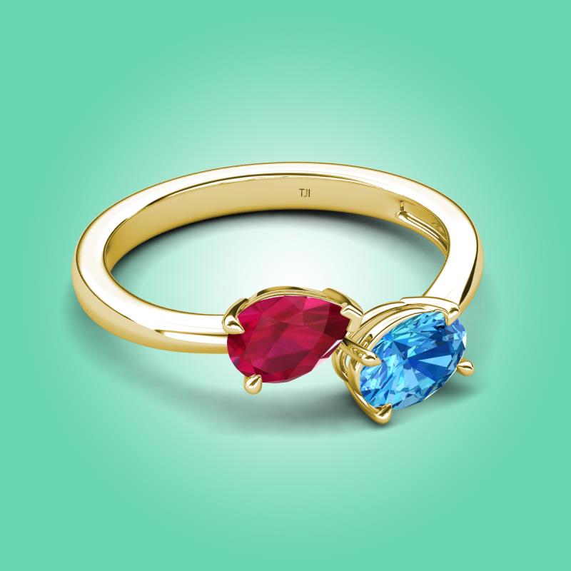 1.95 ctw Ruby Pear Shape 7x5 mm & Blue Topaz Oval Shape 7x5 mm with Prong setting Two Stone Duo Women Engagement Ring in 14K Yellow Gold More Details ...