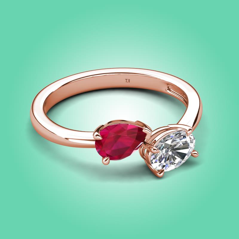 1.75 ctw Ruby Pear Shape 7x5 mm & GIA Certified Natural Diamond Oval Shape 7x5 mm with Prong setting Two Stone Duo Women Engagement Ring in 18K Rose Gold More Details ...