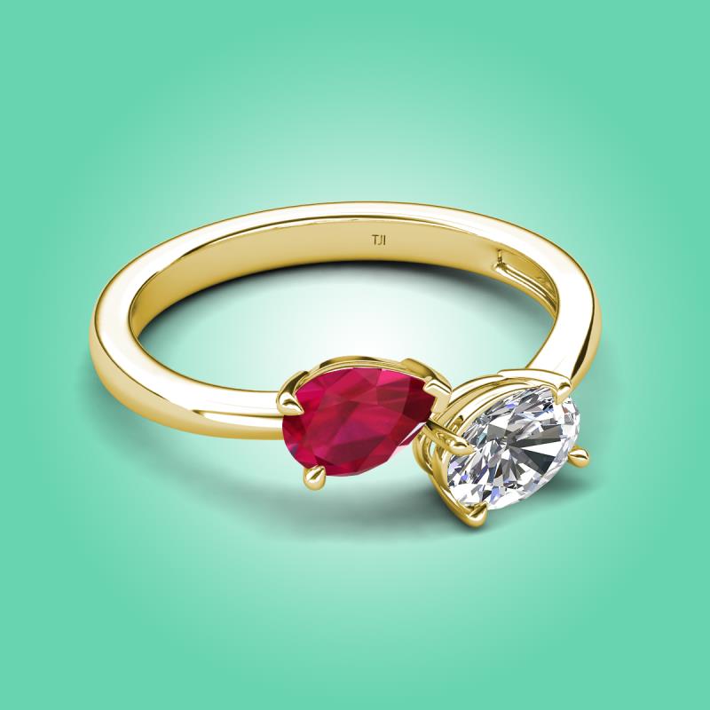1.75 ctw Ruby Pear Shape 7x5 mm & IGI Certified Lab Grown Diamond Oval Shape 7x5 mm with Prong setting Two Stone Duo Women Engagement Ring in 10K Yellow Gold More Details ...