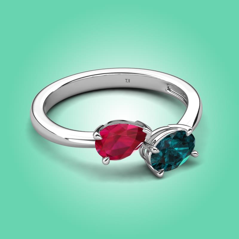 The Ruby Pear Shape and London Blue Topaz Oval Shape Toi Et Moi Duo Ring of 1.95 ctw is the perfect representation of your unique and everlasting bond. The pear and oval shaped gemstones set in a Prong setting, complement each other perfectly, creating a stunning and timeless design that will capture the heart of your loved one, symbolizing your eternal love and commitment that will last a lifetime.
